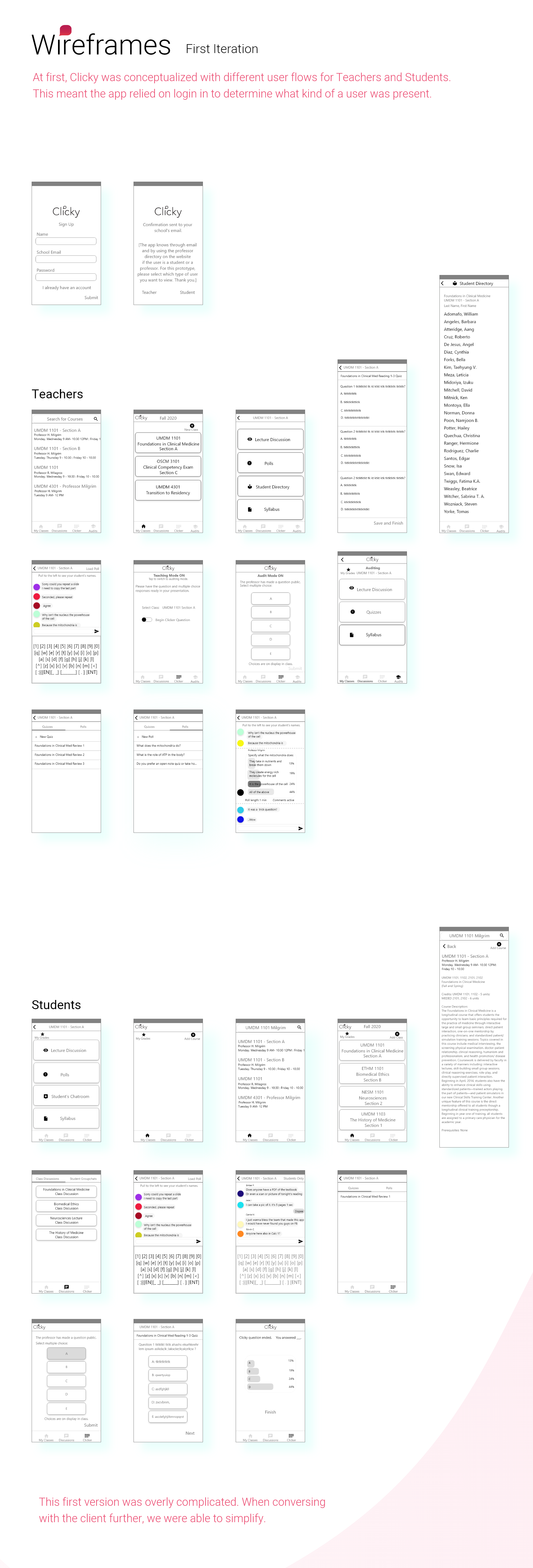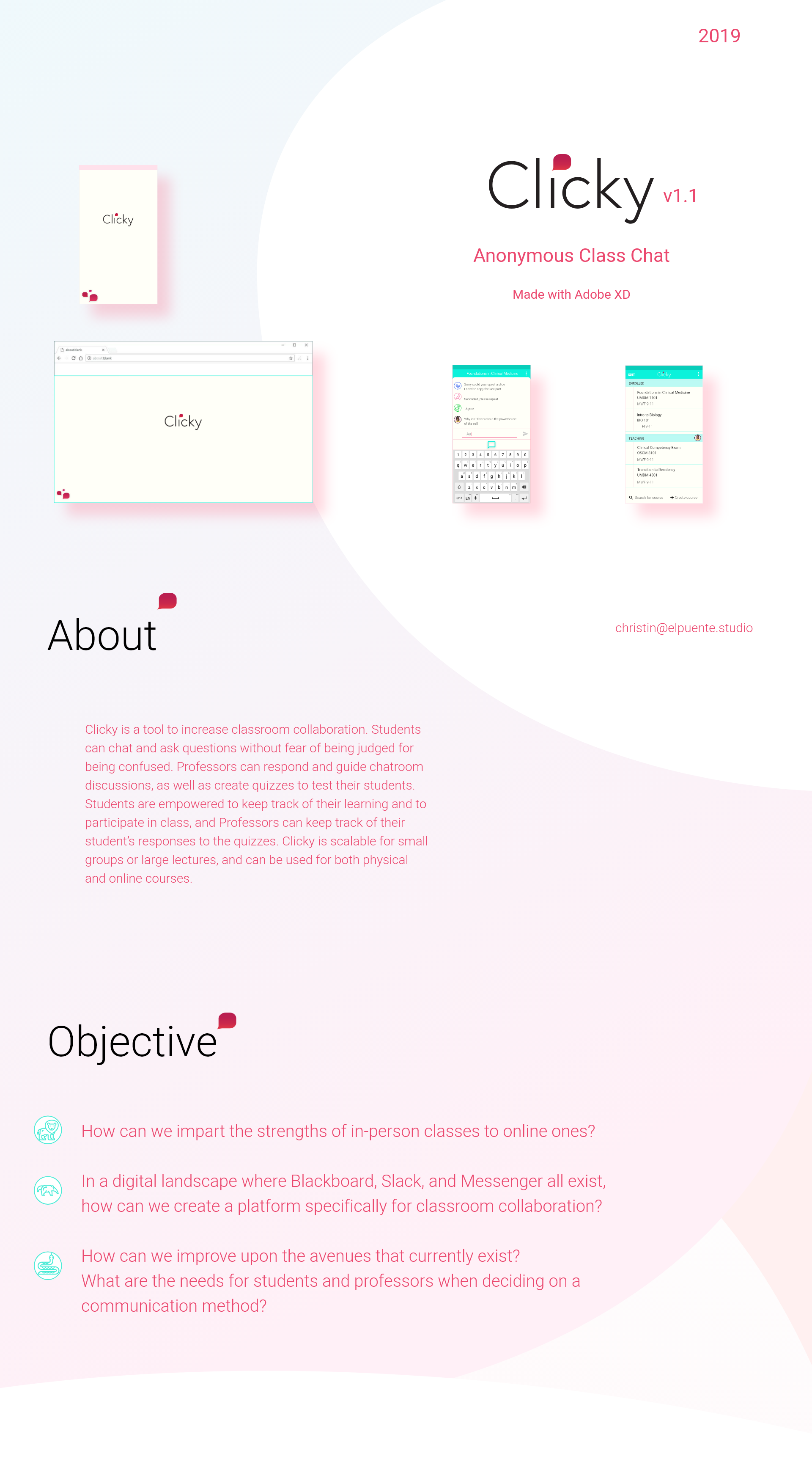 Clicky was created for New York Medical College as a platform where students in huge class sizes can ask questions and participate in class discussions without fear of ridicule.